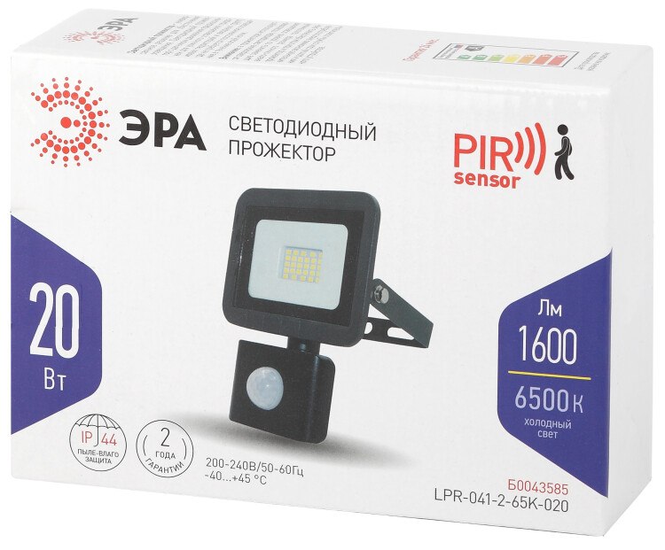 Прожектор светодиодный уличный ЭРА LPR-041-2-65K-020 20Вт 6500К 1600Лм IP65 датчик движения регулируемый