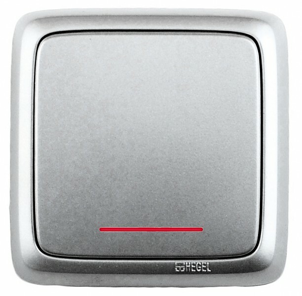 ВА16-164-06 Переключатель открытой установки, одноклавишный, с индикацией, с изолирующей пластиной, цвет серебро