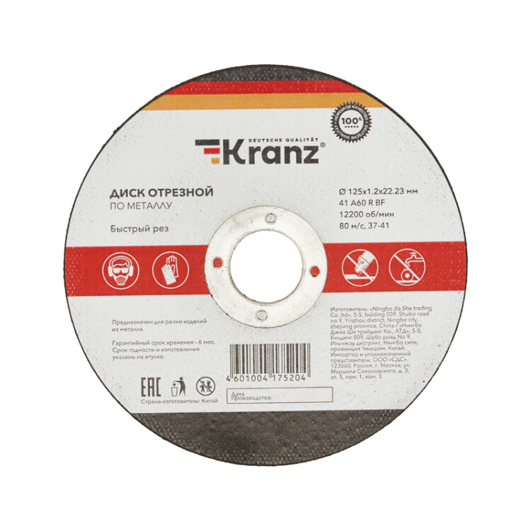 Диск отрезной, прямой, 125х22,2х1,2 мм, металл