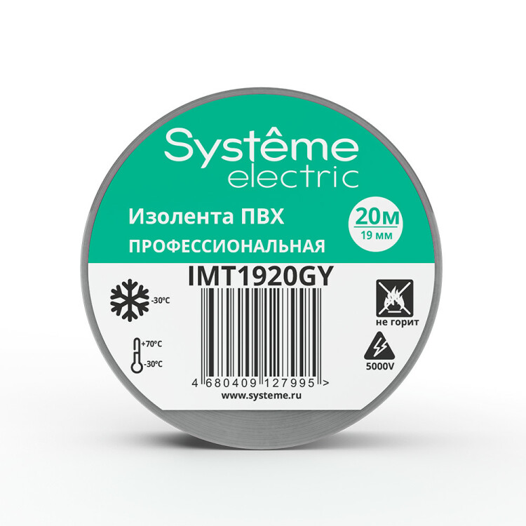 Изолента ПВХ серая 19 мм x 20 м толщина-0,13мм