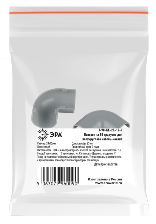 Поворот ЭРА T-90-KK-20-12-F на 90 градусов для полукруглого кабель-канала серый 20х12мм 2шт/комплект