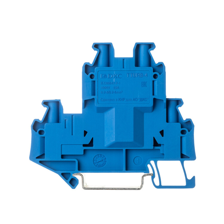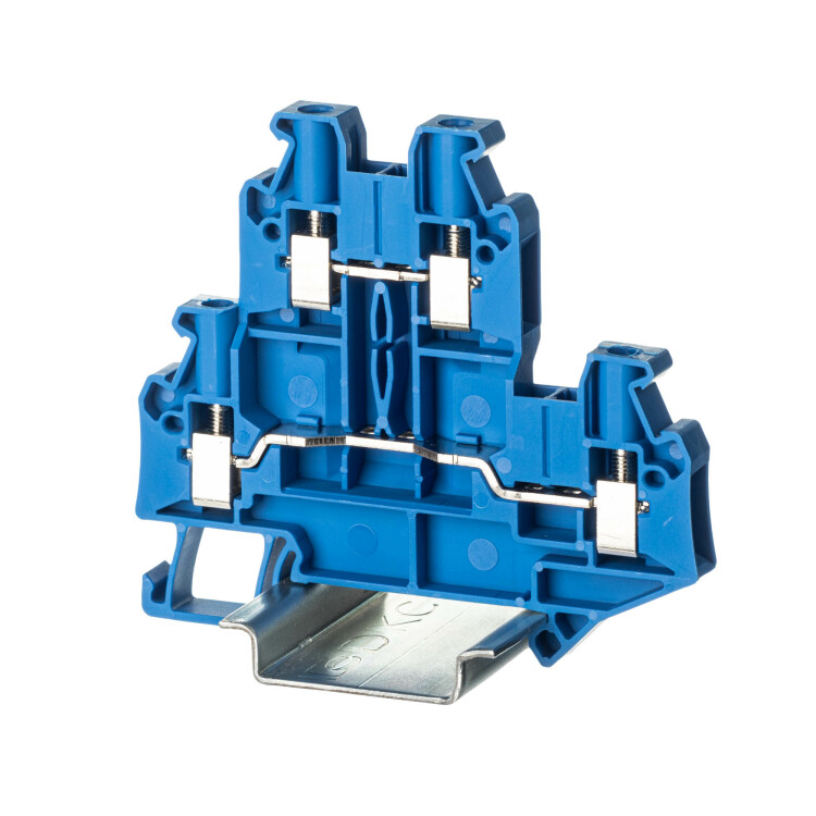 Клемма винтовая 4-х пров. 2-х уров. проходная, 4 мм2, синяя