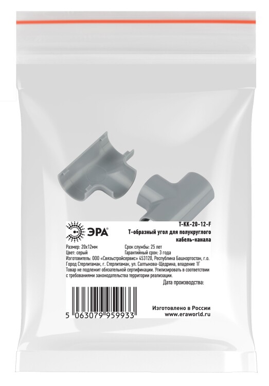 Т-образный угол ЭРА T-KK-20-12-F для полукруглого кабель-канала серый 20х12мм 2шт/комплект