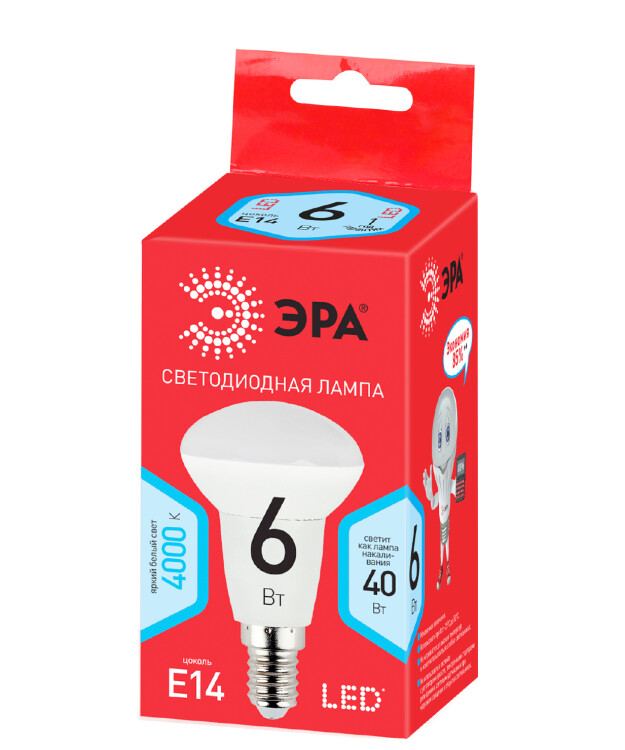 Лампочка светодиодная ЭРА RED LINE LED R50-6W-840-E14 R Е14 / E14 6 Вт рефлектор нейтральный белый свет