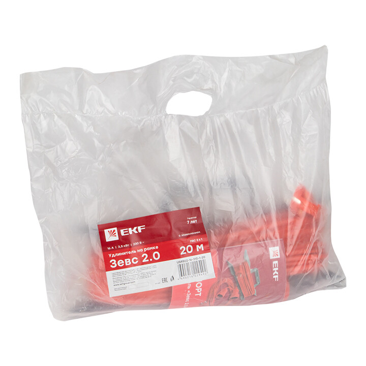 Удлинитель на рамке "Зевс 2.0" 20м с заземлением ПВС 3*1,0 16А/3,5кВт PROxima EKF