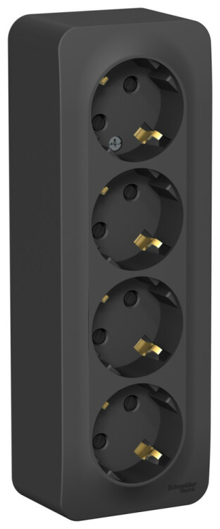Розетка 4х2P+E со шторками 16А 250В накладной монтаж антрацит BLANCA
