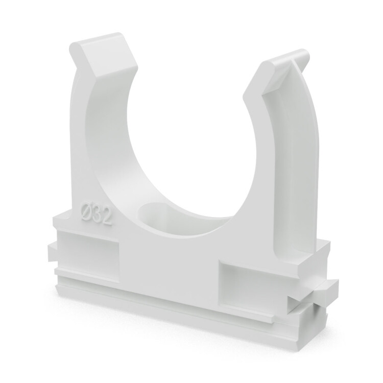 Крепёж-клипса для труб Полистирол белая d32 мм (25шт/500шт уп/кор)