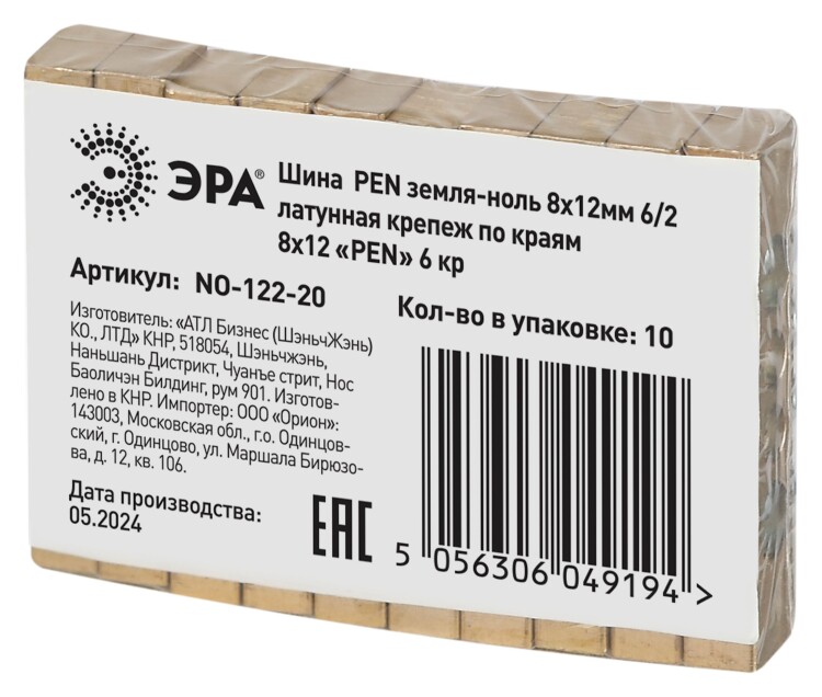 Шина ЭРА NO-122-20 PEN земля-ноль 8х12мм 6/2 латунная крепеж по краям
