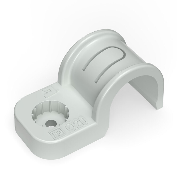 Крепеж-скоба пластиковая односторонняя для прямого монтажа атмосферостойкая серая в п/э d20 мм