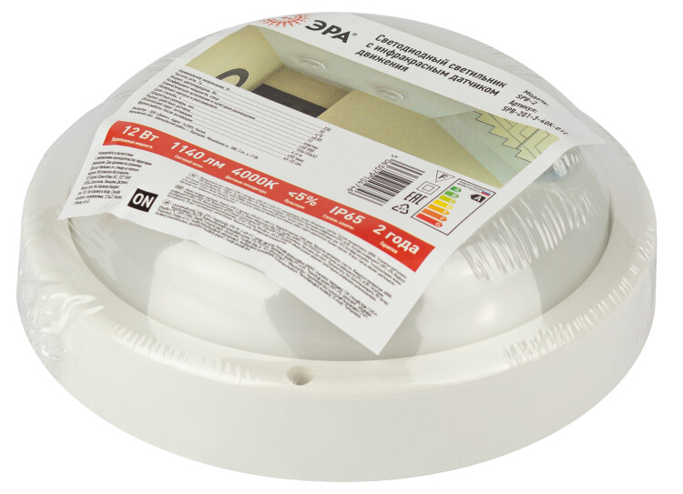 Светильник ЖКХ светодиодный ЭРА SPB-201-3-40K-012 12Вт 4000K 1140Лм IP65 с ИК датчиком движения