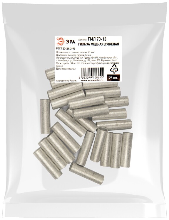 Гильза ЭРА ГМЛ 70-13 медная луженая ГОСТ 23469.3-79