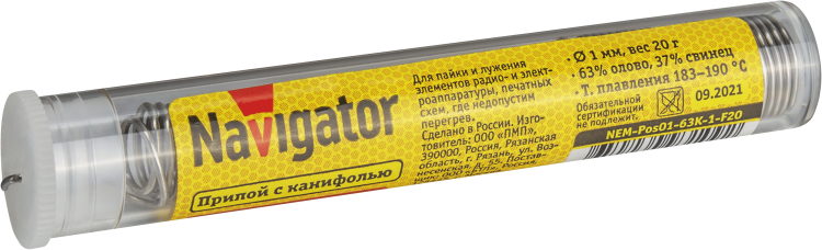 Припой Navigator 93 109 NEM-Pos01-63K-1-F20 (ПОС-63, колба, 1 мм, 20 гр)
