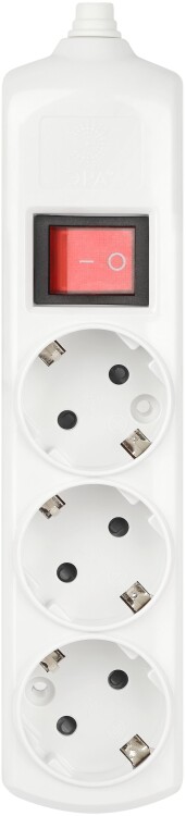Колодка розеточная, 3 розетки, 16А, с/з, IP20, пластик, белая, с выключателем, K-3es