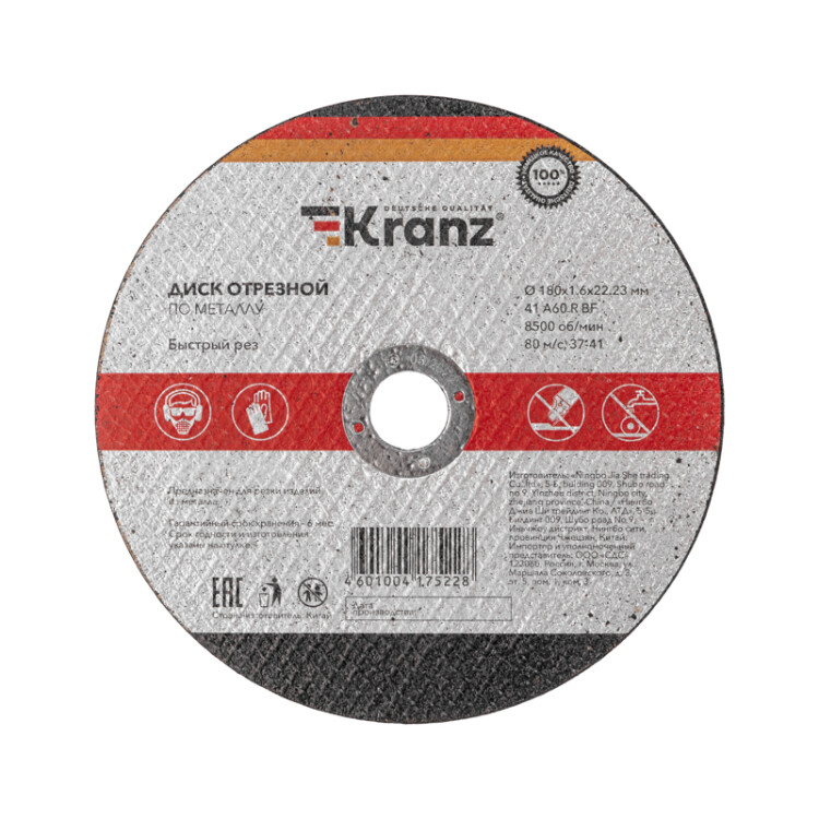 Диск отрезной, прямой, 180х22,2х1,6 мм, металл