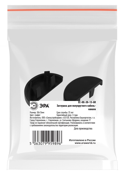 Заглушка ЭРА EC-KK-30-13-GR для полукруглого кабель-канала графит 30х13мм 2шт/комплект