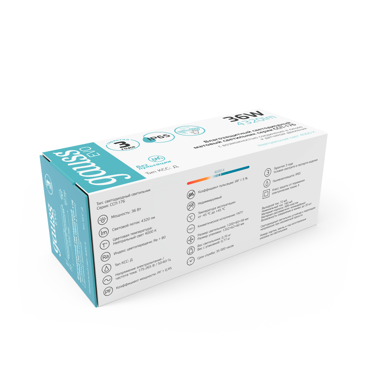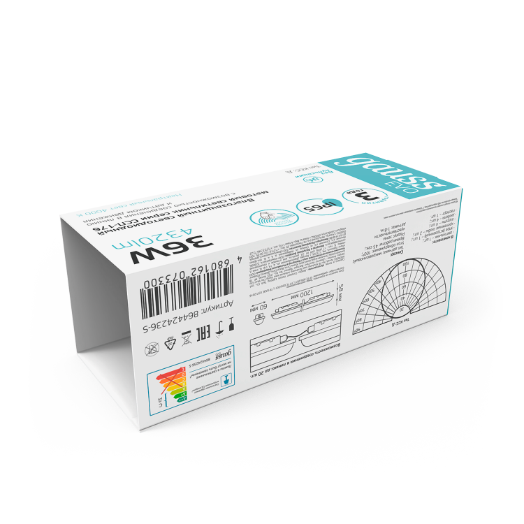 Св-к Gauss LED ССП-176 EVO IP65 1200*60*58 36W 4320lm 6500K 175-265V мат сенс и соед в лин 1/12