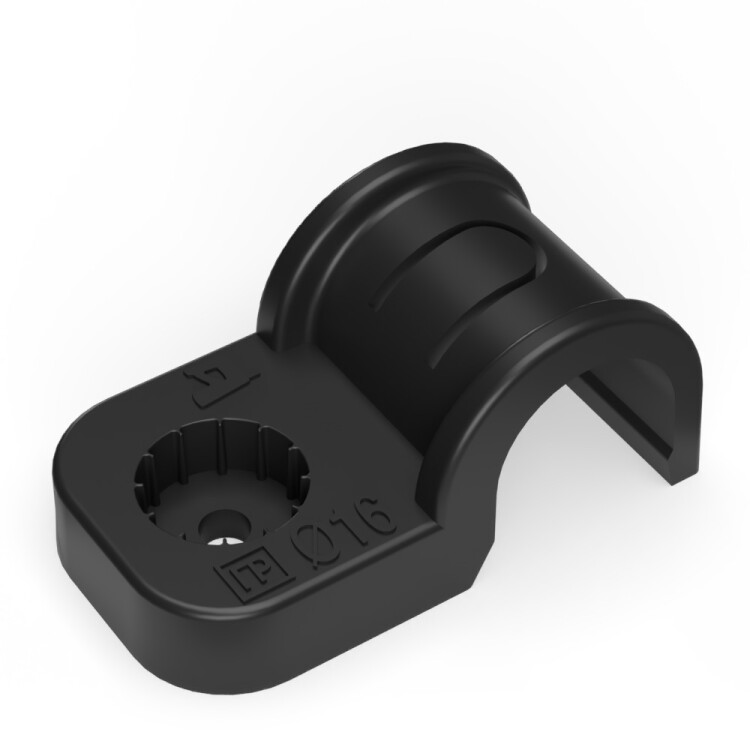 Крепеж-скоба пластиковая односторонняя для прямого монтажа атмосферостойкая черная в п/э d16 мм