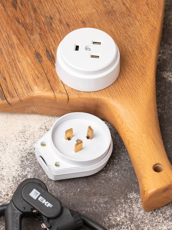 Разъем РШ-ВШ 32А 250В 2P+PE (ОУ) пластиковый бел. EKF PROxima