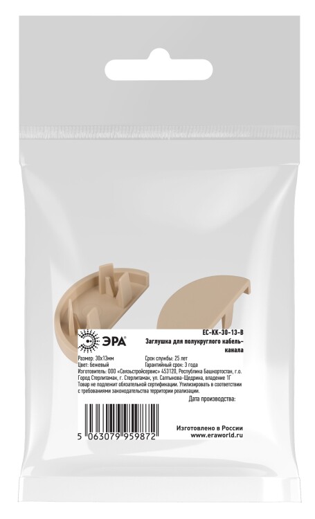 Заглушка ЭРА EC-KK-30-13-B для полукруглого кабель-канала бежевая 30х13мм 2шт/комплект
