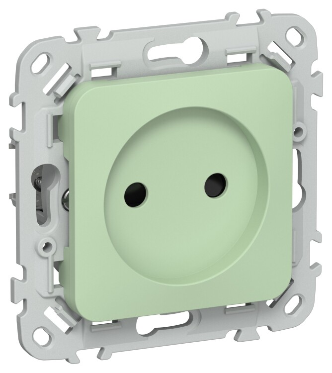 Розетка 2P со шторками безвинтовое крепление 10А РСш01-1-ФлФ фисташковый FLITE