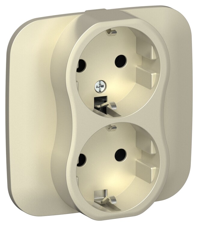 Розетка 2х2P+E в сборе Artistic безвинтовое крепление 16А РС12-1-А-ФлШ шампань FLITE