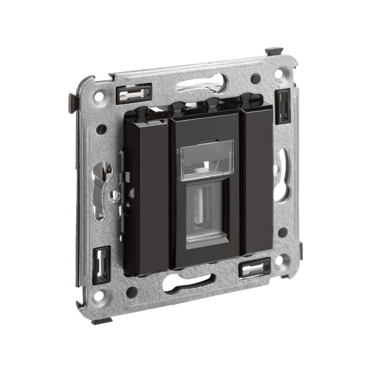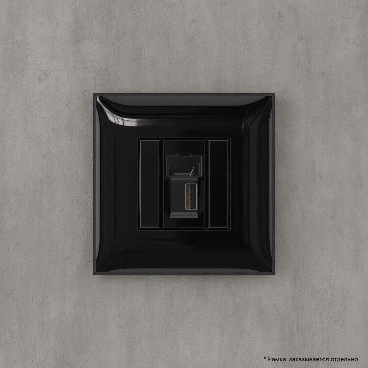 USB 2.0 розетка одинарная в стену, тип А-А, "Avanti", "Черный квадрат"