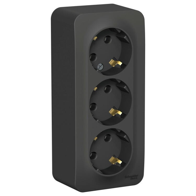 Розетка 3х2P+Е 16А 250В накладной монтаж антрацит BLANCA