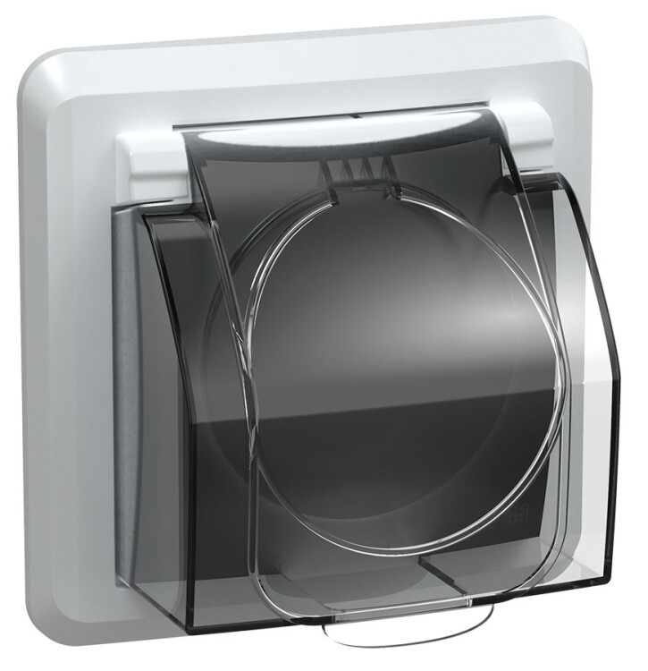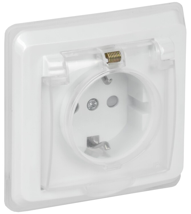 Розетка 2P+E с крышкой IP44 белый (РСбш10-3-ВБ) Вега