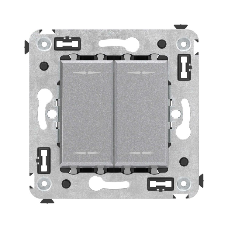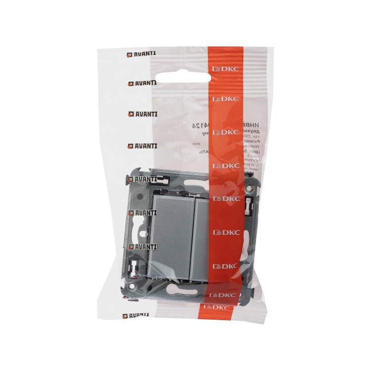 Инвертор двухклавишный в стену, "Avanti", "Закаленная сталь"