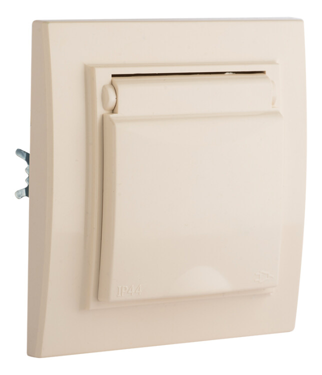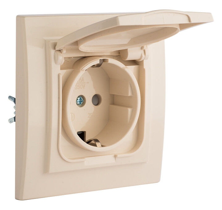 Минск Розетка 1-мест. СП с/з с крышкой 16А беж. с защ. штор. IP44 EKF