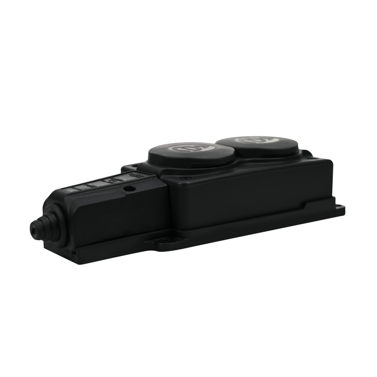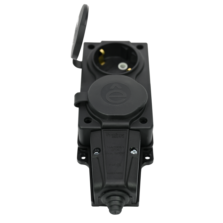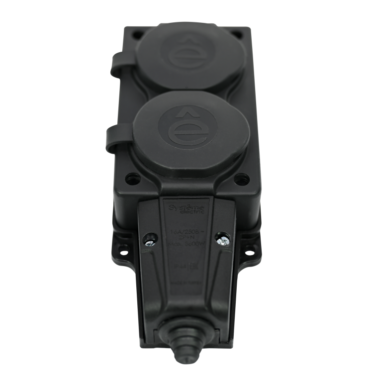 Колодка розеточная, 2 розетки, 16А, с/з, IP44, каучук, чёрная, с защитными крышками, MultiSet