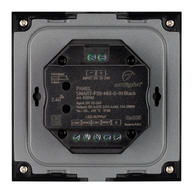 Панель SMART-P20-MIX-G-IN Black (12-24V, 4x3A, Rotary, 2.4G) (Arlight, IP20 Пластик, 5 лет)