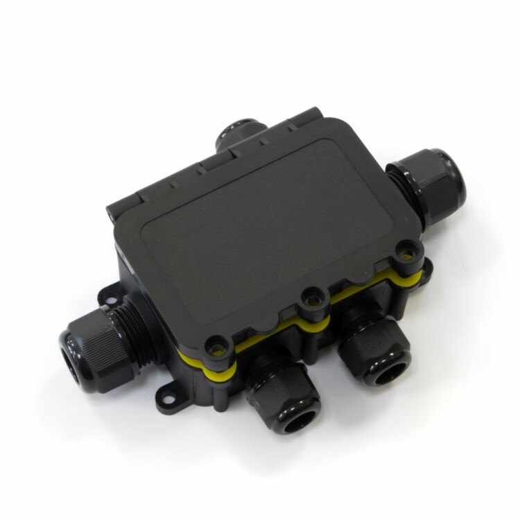 Распределительная коробка с откидной крышкой 5-вводная IP68 ПА66 40А 450В d3,5-12 мм 131х95х37 Промрукав
