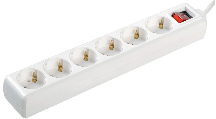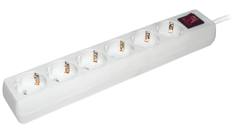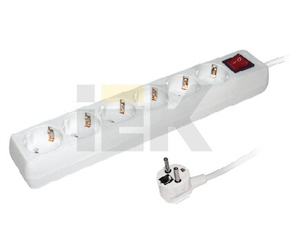 Удлинитель, 6 розеток, длина 5м, 16А, ПВС3х1 мм², с/з, IP20, пластик, белый, У06К-выкл.