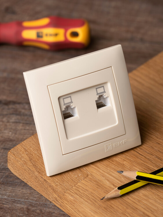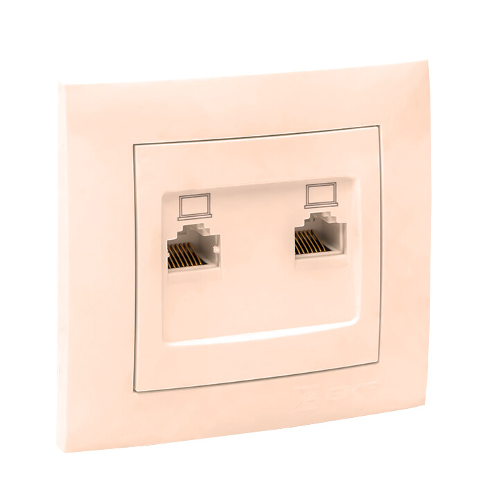 Валенсия розетка компьютерная RJ-45 2-местная кремовая EKF PROxima