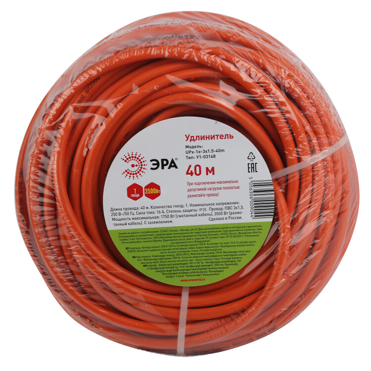 Удлинитель силовой ЭРА UPx-1e-3x1.5-40m в бухте c заземлением 1 розетка 40м ПВС 3х1.5мм2
