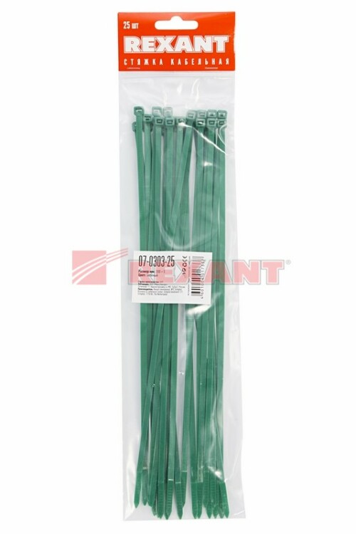 Стяжка кабельная нейлоновая 300x4,8мм, зеленая (25 шт/уп) REXANT