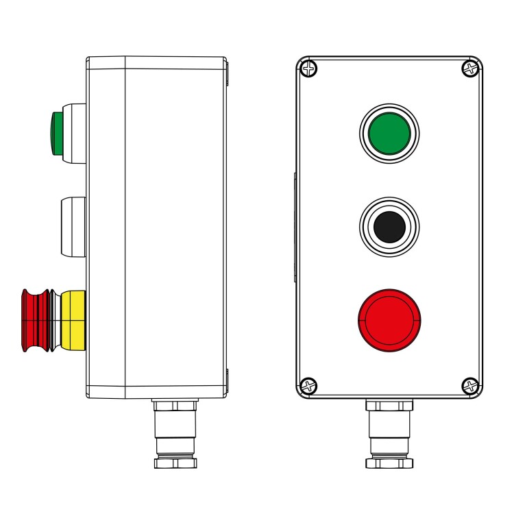 Взрывозащищенный пост управления из полиэстера CPE-P-04-(1xLG(250)-1xP1B(11)-1xP6E(11))-1xKH2MHK(C)1Ex d e IIC Т5 Gb / Ex tb IIIC T95°C Db IP66/КЗ
