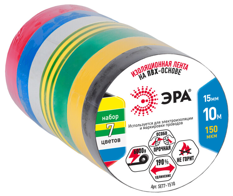 Набор изолент ЭРА SET7-1510 ПВХ 7 шт цветная 15мм х 10м
