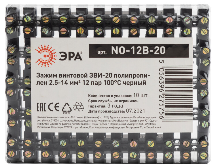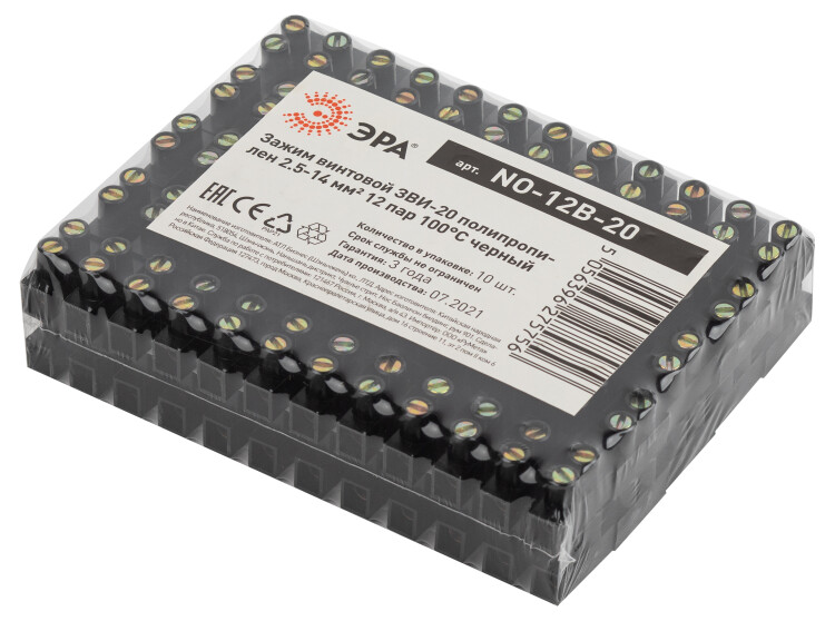 Зажим винтовой ЭРА ЗВИ-20 полипропилен 2.5-14 мм2, 12 пар 100°С черный