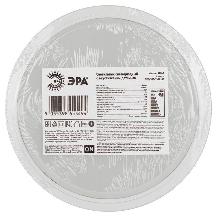 Светильник ЖКХ светодиодный ЭРА SPB-301-2-4K-10 IP40 10Вт 800Лм 4000K 155х155х33 с акустическим датч
