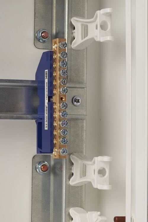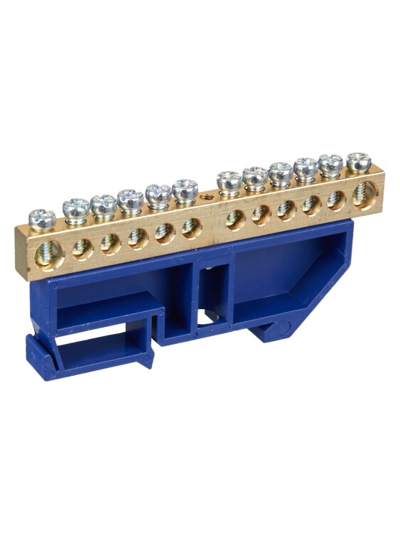 Шина N "ноль" 8х12мм 12 отв. синий на DIN-рейку