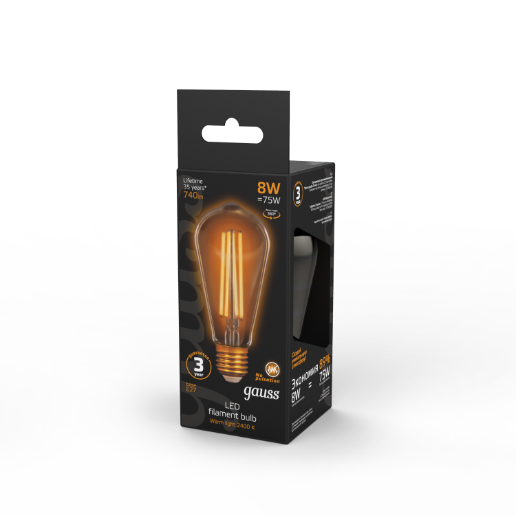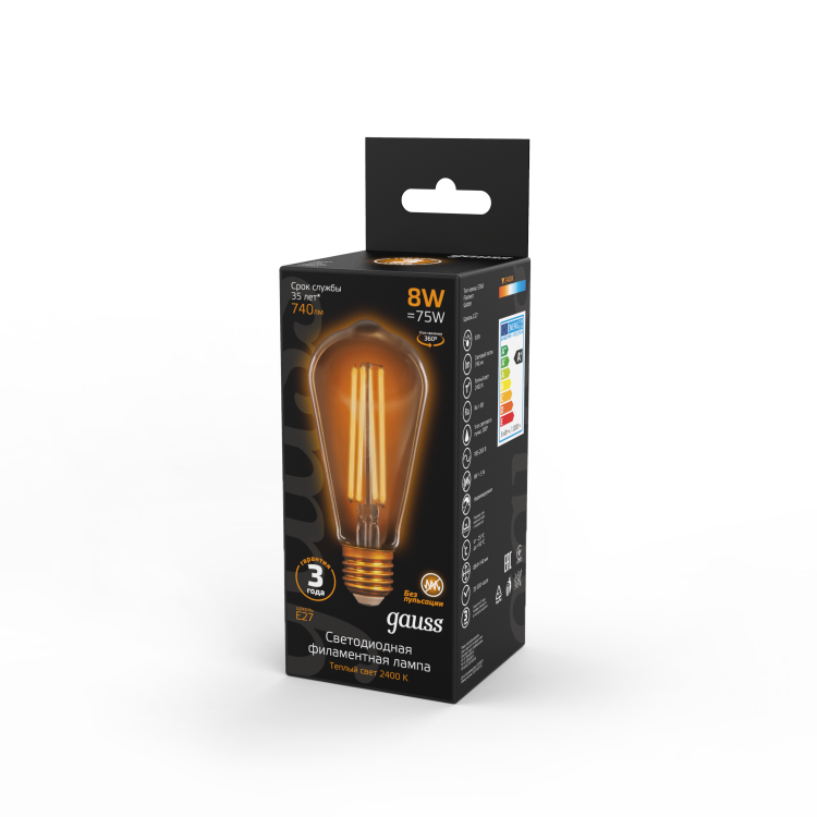 Лампа светодиодная 8 Вт 230В E27 Filament винтажная колба ST64 тёплый белый 2400К