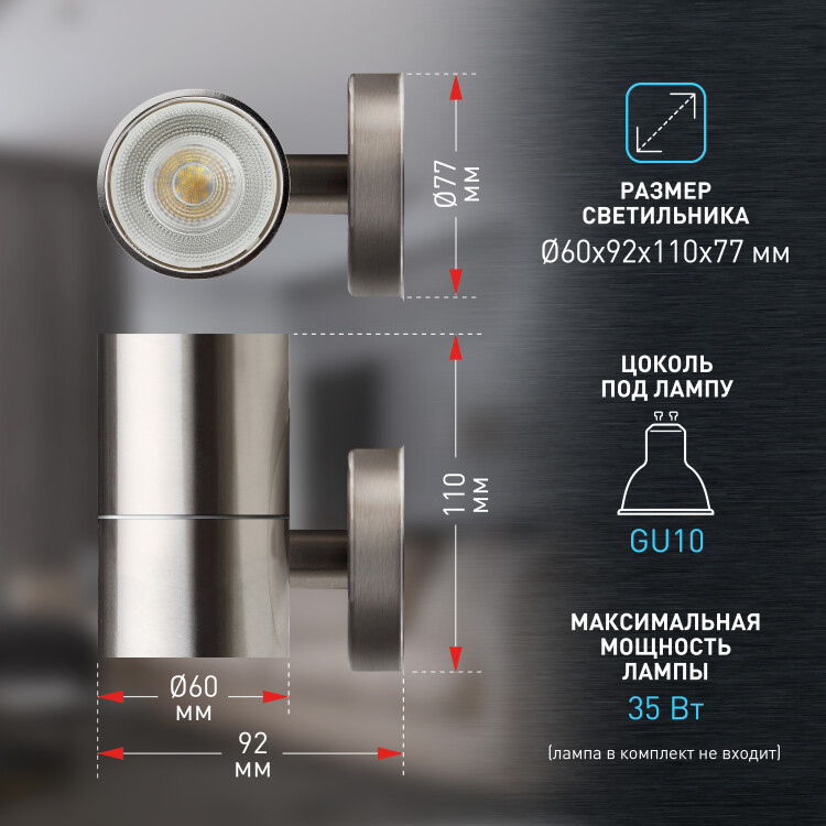 Светильник настен. для ГЛ 35Вт IP54 GU10 сталь хром WL15
