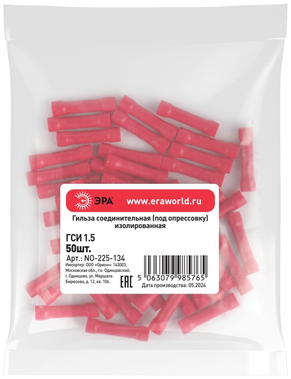 Гильза соединительная ЭРА NO-225-134 ГСИ 1.5 изолированная под опрессовку (упаковка 50 шт.)