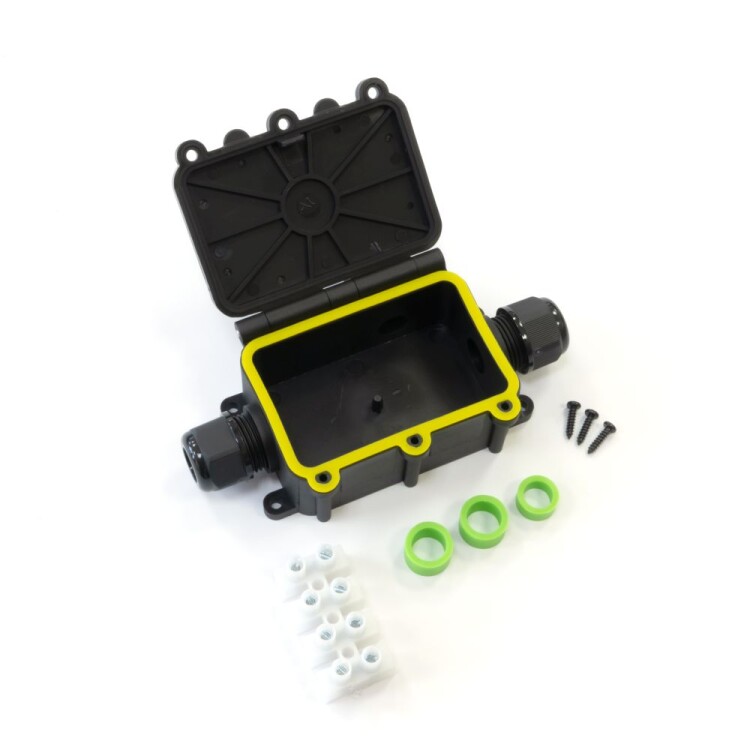 Распределительная коробка с откидной крышкой 3-вводная IP68 ПА66 40А 450В d3,5-12 мм 131х80х37 Промрукав