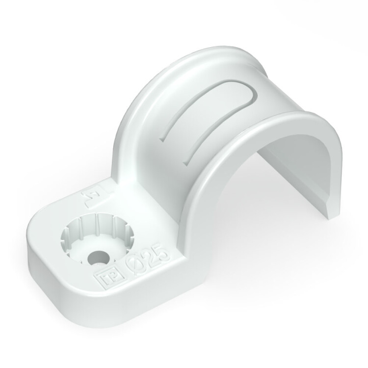 Крепеж-скоба пластиковая односторонняя для прямого монтажа атмосферостойкая белая в п/э d25 мм