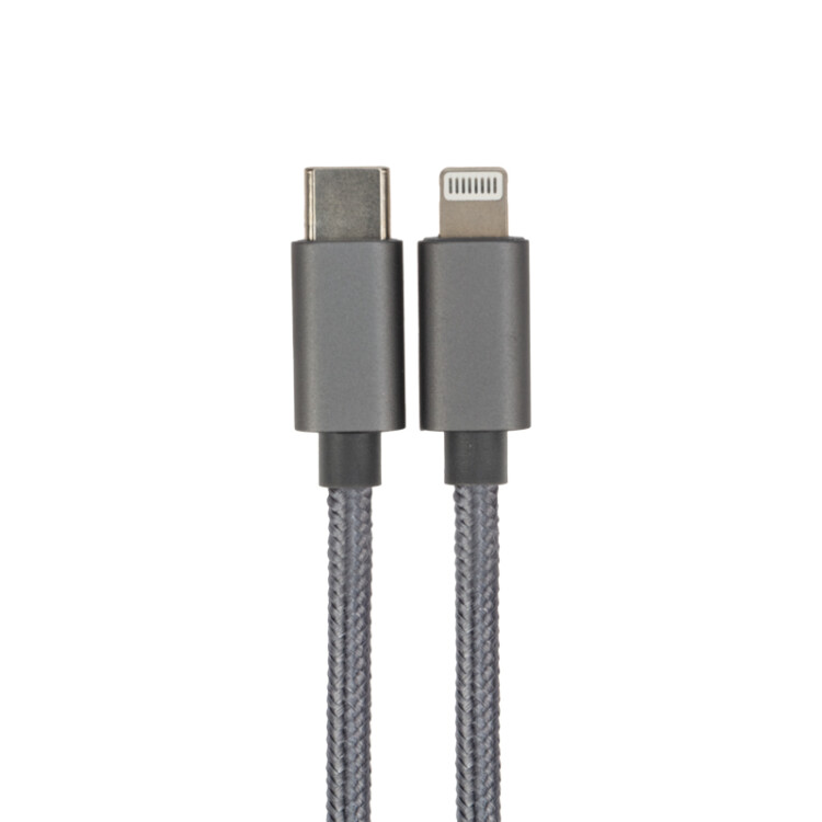 Кабель Type-C - Lightning для Apple, 3А, 1м, в нейлоновой серой оплетке, Power Delivery REXANT