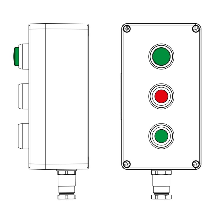 Взрывозащищенный пост управления из полиэстера CPE-P-04-(1xLG(250)-1xP1R(11)-1xP1G(11))-1xKH2MHK(C)1Ex d e IIC Т5 Gb / Ex tb IIIC T95°C Db IP66/КЗ