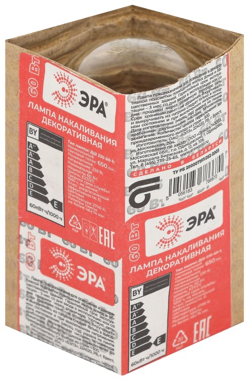 Лампочка ЭРА P45 60Вт Е27 / E27 230В шар прозрачный в гофре